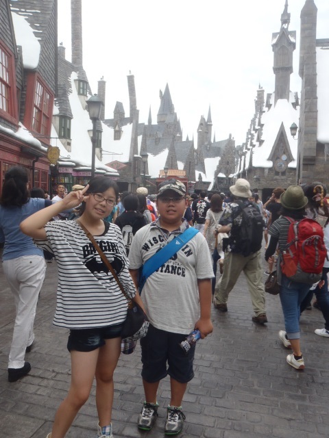 ハリポタのゲートのとこにねーちゃんがメガホン持ってなんか叫んでる???